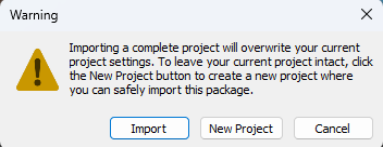 完全なプロジェクトをインポートすると、現在のプロジェクト設定は上書きされます。
