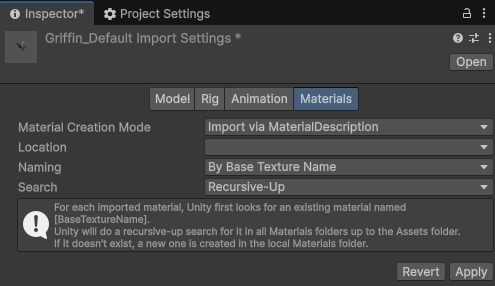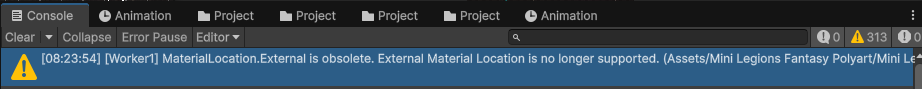 [Worker1] MaterialLocation.External is obsolete. External Material Location is no longer supported. (Assets/Mini Legions Fantasy Polyart/Mini Legion Human/Meshes/Griffin_Default.fbx)